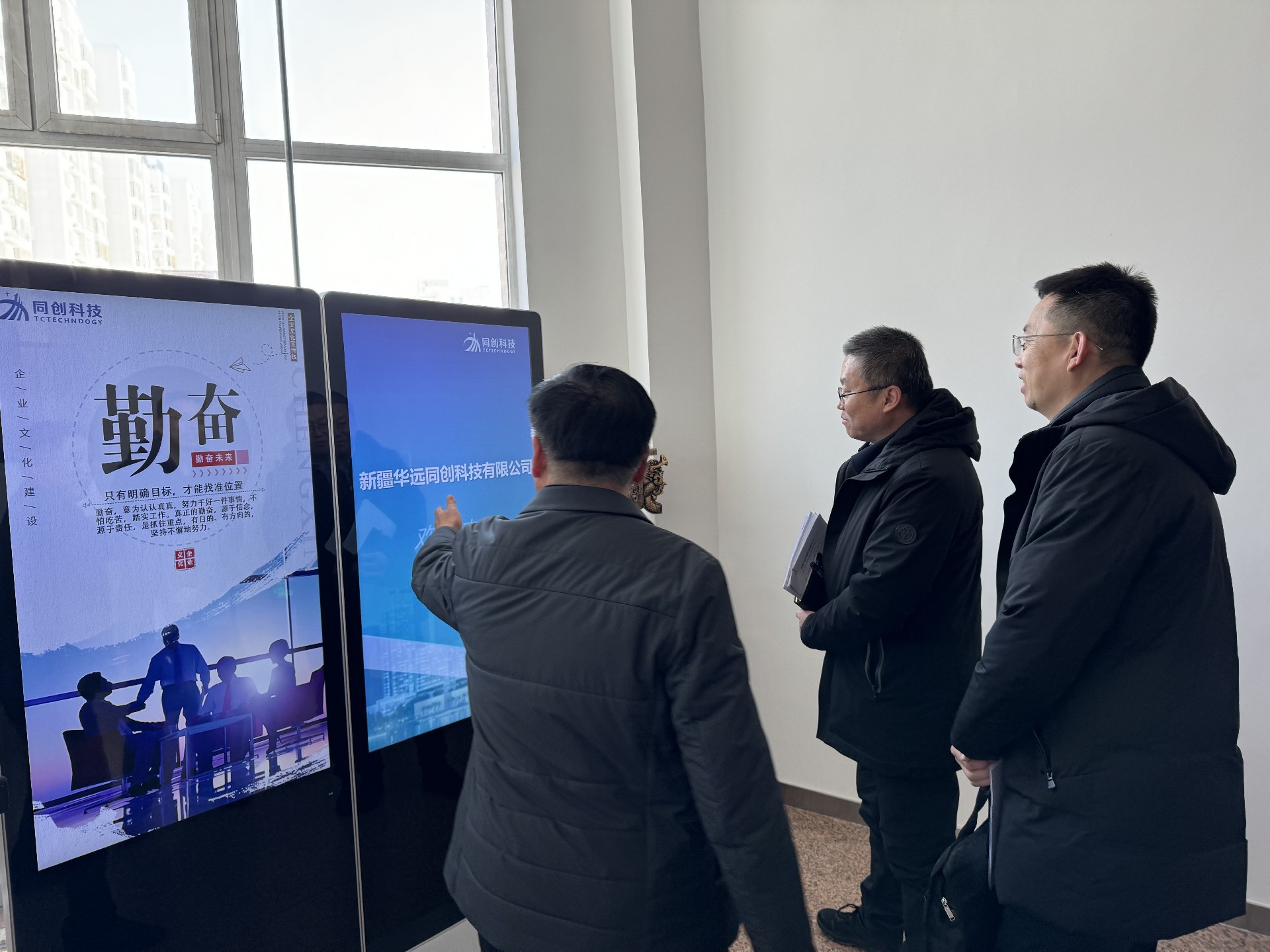 2025年1月15日下午,庫爾勒市委常委高勝及市科技局局長侯建祝一行蒞臨同創(chuàng)科技公司開展調(diào)研指導(dǎo)工作。公司總經(jīng)理?xiàng)铋L福陪同參觀、座談交流。
